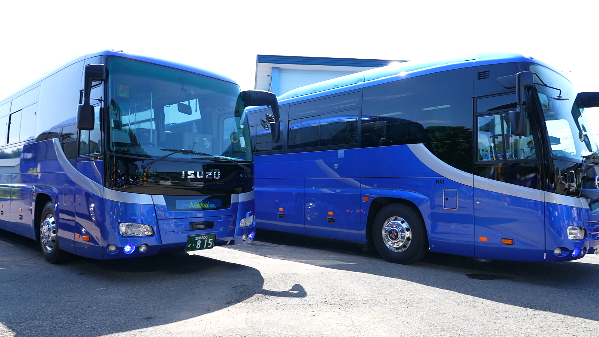 - 企業の送迎バスや修学旅行・宿泊学習・見学学習・各種旅行・ 町内会行事(芋ほり・日帰り温泉・果物狩り・野球観戦等)の一般貸切バス事業を行っております。