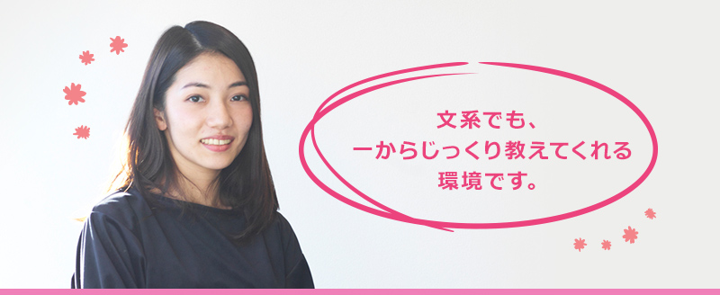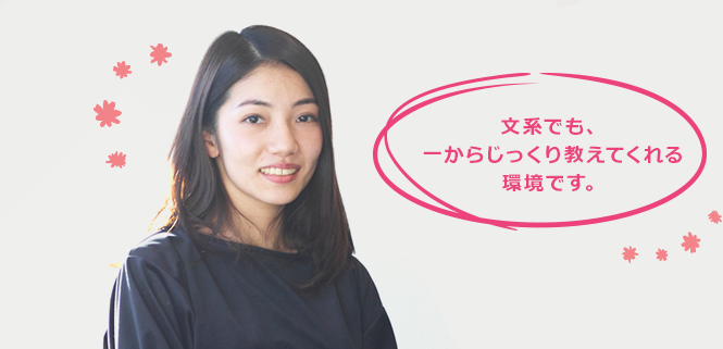 私のように文系出身のシステムエンジニアもいるし、知識ゼロの状態でも、新人のペースで基礎から教えてくれる環境があるので、文系でも安心して応募してもらえればと思います。